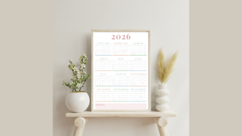 Your 2026 wall calendar runs from January to December and includes space to: